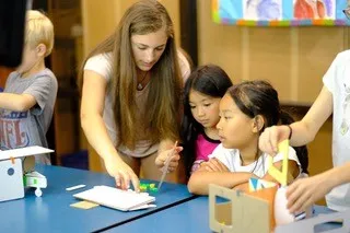 Klein intentionally creates her modeling kits without pre-set rules and instructions so that kids can “learn to improvise, experiment, fail, reexamine, and succeed,” she explained. Each of the design challenges “are based on design thinking and engineering concepts with a focus on community, communication, empathy, and creating a sustainable world.” The kits include cardboard pieces of various shapes, small plastic connectors, and lesson plans to channel students’ creativity into meaningful STEM learning.