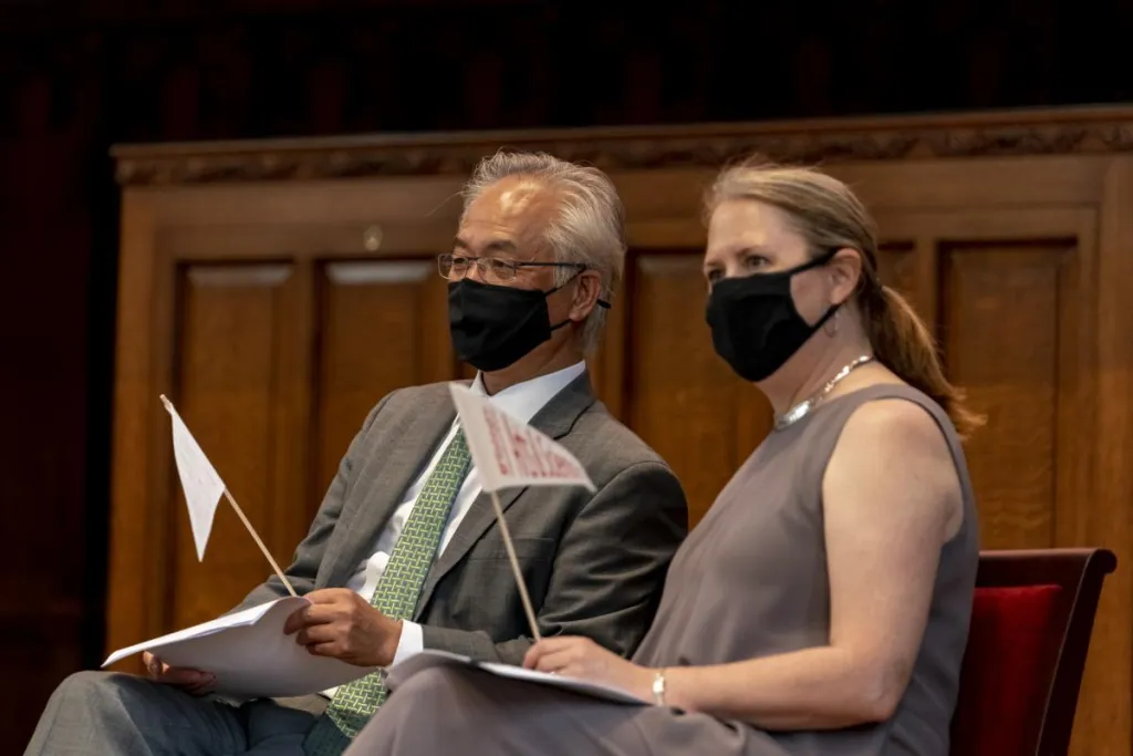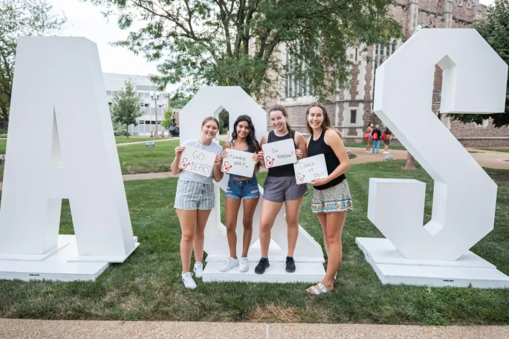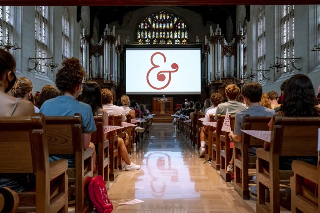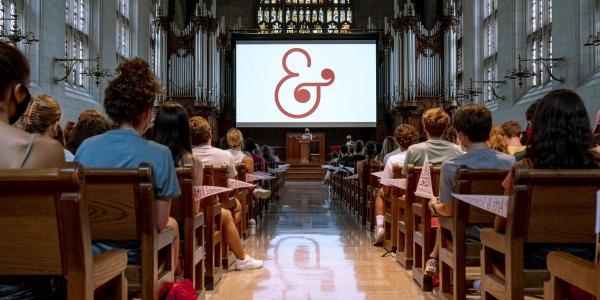 On Monday, Aug. 23, the College of Arts & Sciences welcomed 1,350 incoming students during the Deans' Welcome event. First-year students gathered in Graham Chapel to hear remarks from Dean Feng Sheng Hu and Vice Dean of Undergraduate Affairs Erin McGlothlin. In her remarks, McGlothlin invited students to think of their time at Washington University as an academic journey "that will transport you over the course of your undergraduate years to a completely new place. This moment marks the very first step in that journey, the point at which the adventure commences."