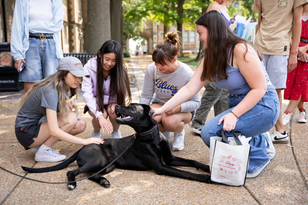 Programming continued through Wednesday with opportunities for students to visit academic departments and programs, meet faculty members, and learn more about academic resources and experiential learning opportunities with campus partners. Students also visited with Bear, Brookie, and Archie outside Cupples II, where Arts & Sciences undergraduate students can find advising support.