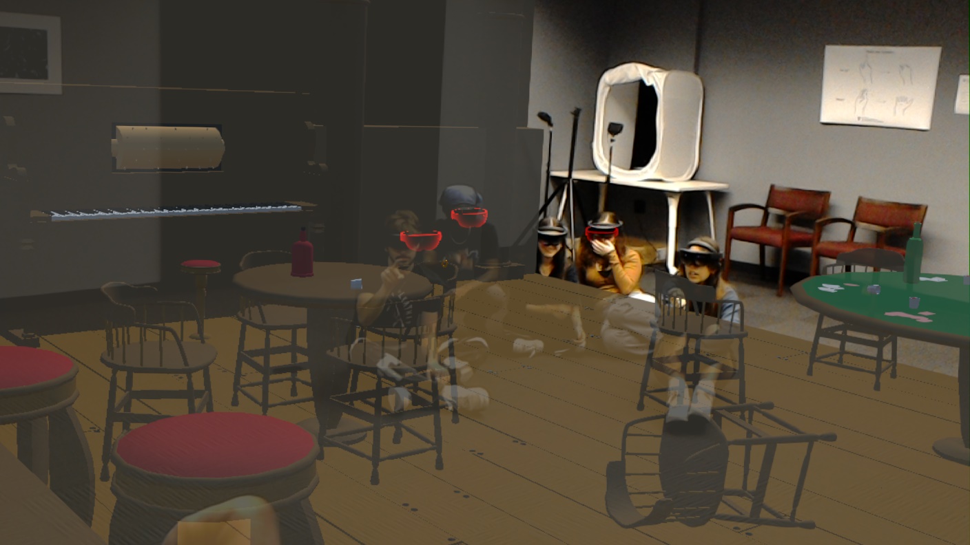 Augmented reality — what Youkilis’ class used — differs from virtual reality. While virtual reality replaces the user’s vision, augmented reality adds a layer with digital elements that enrich the user's perception of the real-world environment. Using Microsoft HoloLens headsets, the students could still see and interact with one another while observing the aftermath of the card game, complete with overturned chairs and far-flung playing cards.