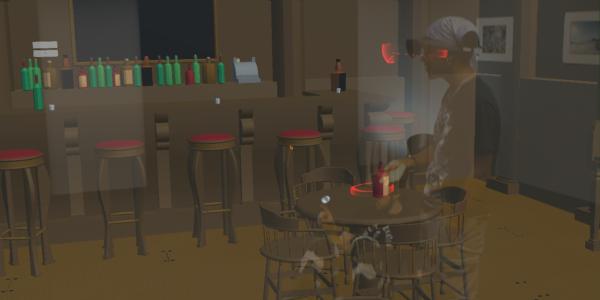 So, Youkilis reached out to Ethan Schaefer, a staff scientist in the Fossett Lab. Schaefer took a free 3D model and tailored it to the size of the AR space in the lab. A saloon in the American Old West captured in the moments immediately following a contentious game of cards became a setting for her students to discuss, debate, and practice vocabulary about games — all in Italian.