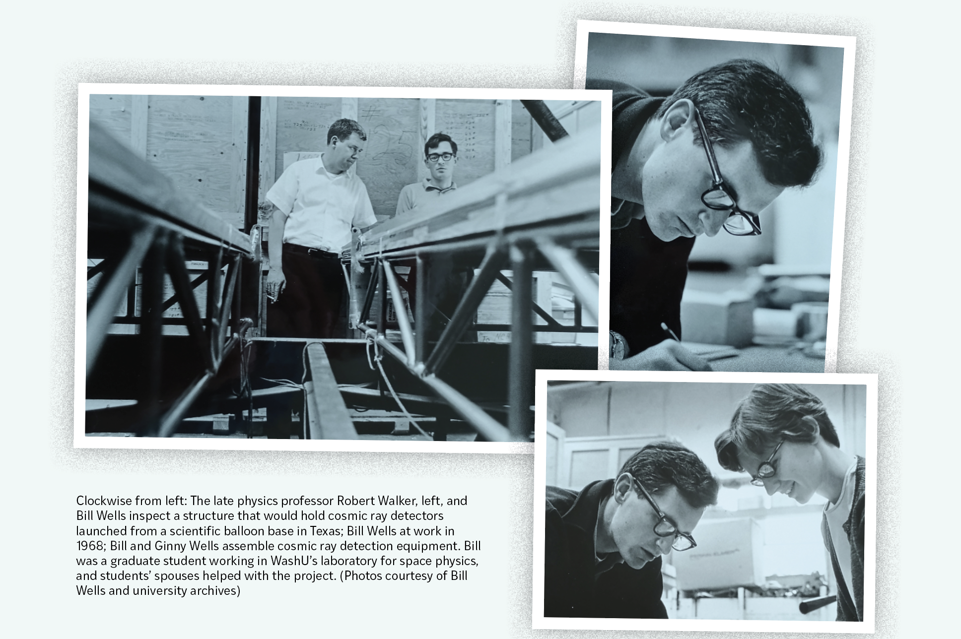Wells took a school bus to the nearest city to attend elementary and high school before earning a physics degree on a partial scholarship at Union College in nearby Schenectady, New York. He applied to WashU on the recommendation of his senior thesis advisor, Winfred Schwarz, BA ’36, PhD ’38. At a church dinner for college students his senior year, he met Ginny, who had earned a master’s degree in library science. They married in 1966 and settled in the St. Louis area. Ginny became a librarian at Fontbonne College and Bill rode his bike from their Clayton apartment to WashU to pursue his doctorate in physics.