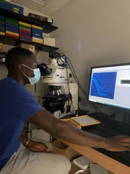 Oyetunji at work in Timothy Miller's lab. (Photo courtesy Ephraim Oyetunji)