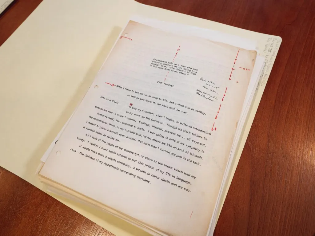 While Gass’s revisions reveal the extreme attention that the author paid to the minutiae of his writing, other documents in the William H. Gass Papers show a similarly careful crafting of his works as a whole. Youngblood recalls one such document, a long letter that Gass wrote to the publishers of the novel The Tunnel.