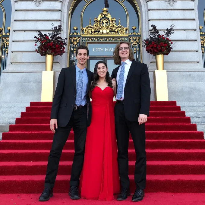 Music students Hannah Gilberstadt, Andrew Senol, and Matthew Galik perform in San Francisco
