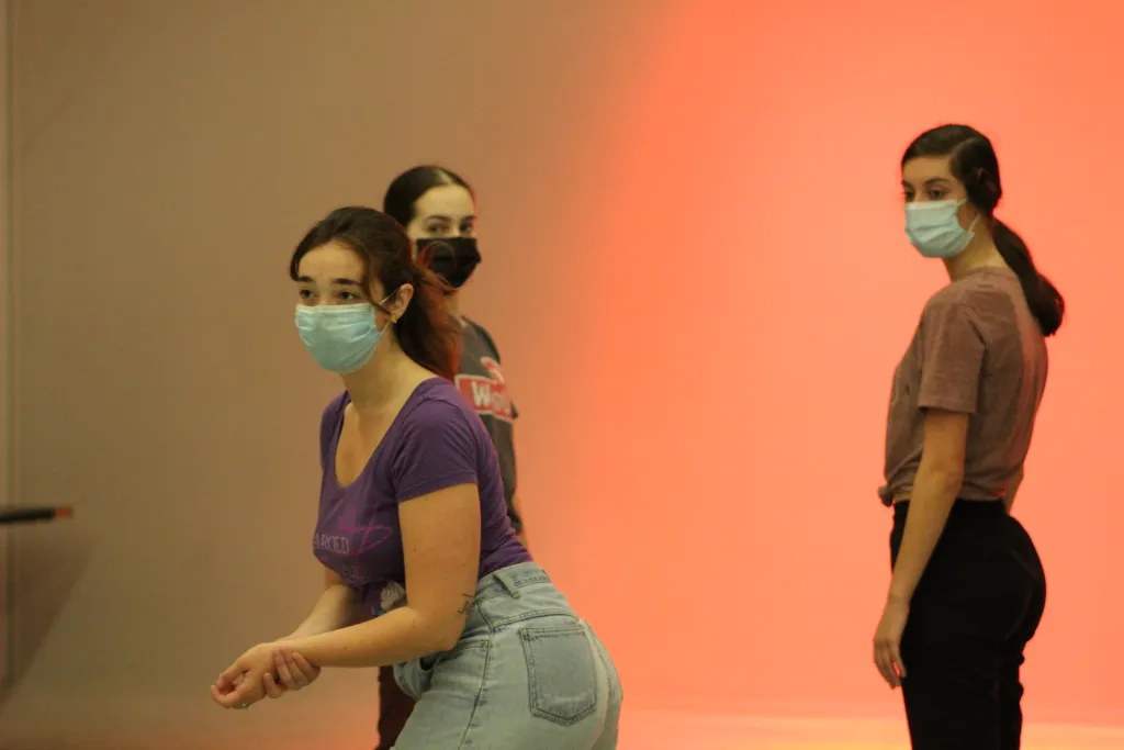 Myers (front) dances onstage with Rachel Bryant and Ali Yaniz, Arts & Sciences students who are also instructors with CityDance.