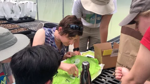 Science communications fellow Selaam Dollisso embedded with Tyson Research Center's plant disease team, led by Rachel Penczykowski, to understand their work in the field.