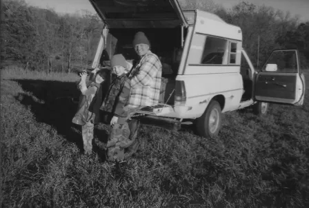 front of his family’s old Dodge truck. Moore grew up in rural Missouri,