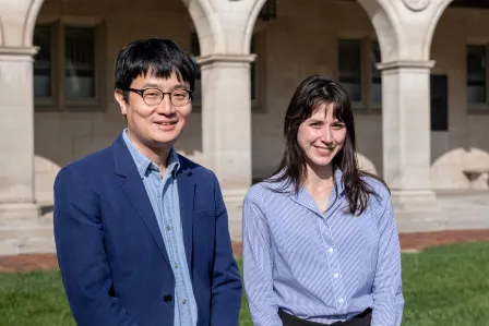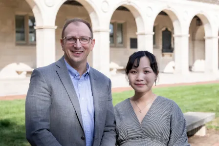 Graduate student Jinping Yang (right) with adviser Tim Wencewicz.
