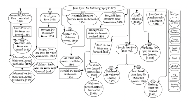 shows the genealogy of the translations, adaptations, and imitations of Jane Eyre in print.