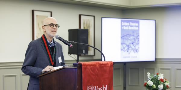 Jonathan Judaken was installed as the Gloria M. Goldstein Professor of Jewish History & Thought on April 3. The program included a welcome from Feng Sheng Hu, the Richard G. Engelsmann Dean of Arts & Sciences and Lucille P. Markey Distinguished Professor; remarks from Erin McGlothlin, vice dean of undergraduate affairs and the Gloria M. Goldstein Professor of Holocaust Studies; and the installation and medallion presentation by Provost Beverly Wendland.