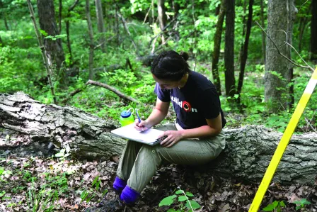 As an undergraduate, Emily Dewald-Wang, AB ’19, spent many days in the Tyson Forest Dynamics Plot, a 25-hectare oak-hickory forest. She was part of a group working to understand how prescribed burns and natural enemies shape the structure and composition of tree communities. Working in the field of ecology — and in the literal field — left a lasting impression. “The experience of working on a large field crew, in a small lab, and on my own independent research project at Tyson were by far the best parts of my undergrad career,” she said. The mentorship she received and the type of work were influential in her choice to study ecology in grad school. And it’s an experience she wouldn’t have had without the financial support from the Lennette Field Research Award.