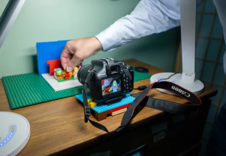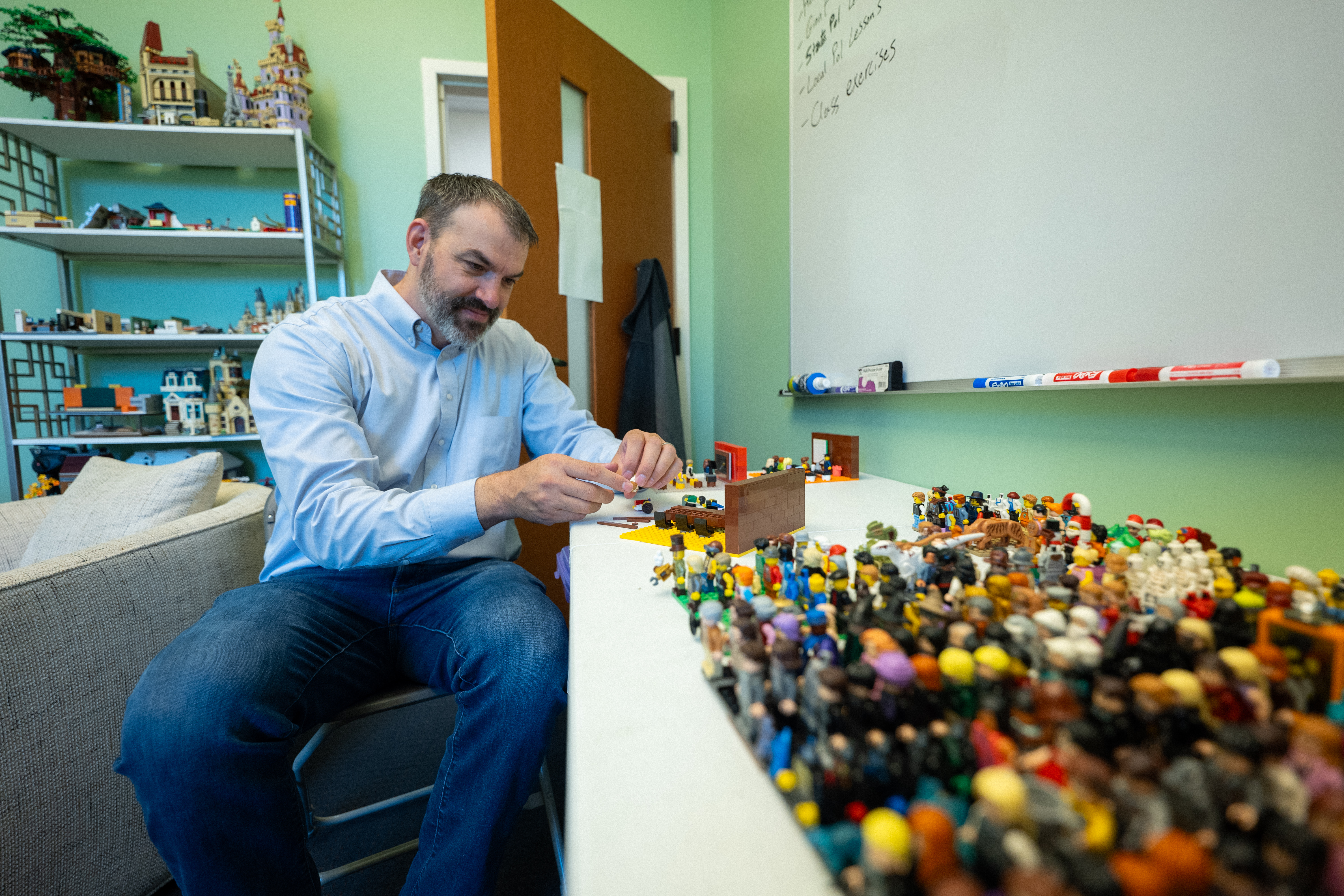 Political science professor Dan Butler brings civics to life, one LEGO brick at a time, with a stop-motion series that makes learning about the U.S. government fun and accessible. (Credit: Sean Garcia)