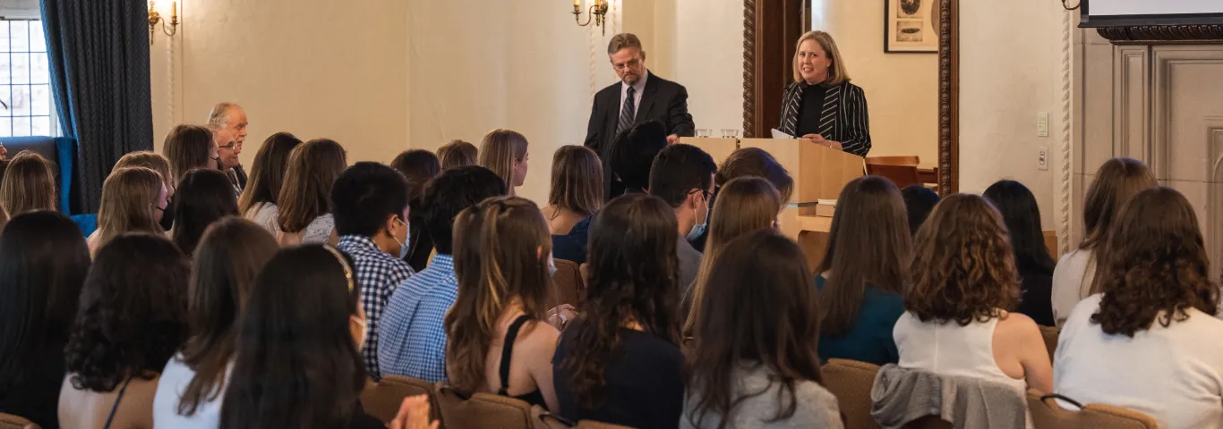 On Monday, May 2, students from the classes of 2022 and 2023 gathered in the Women's Building Formal Lounge to celebrate the induction of a new member class into the Washington University in St. Louis chapter of Phi Beta Kappa.
