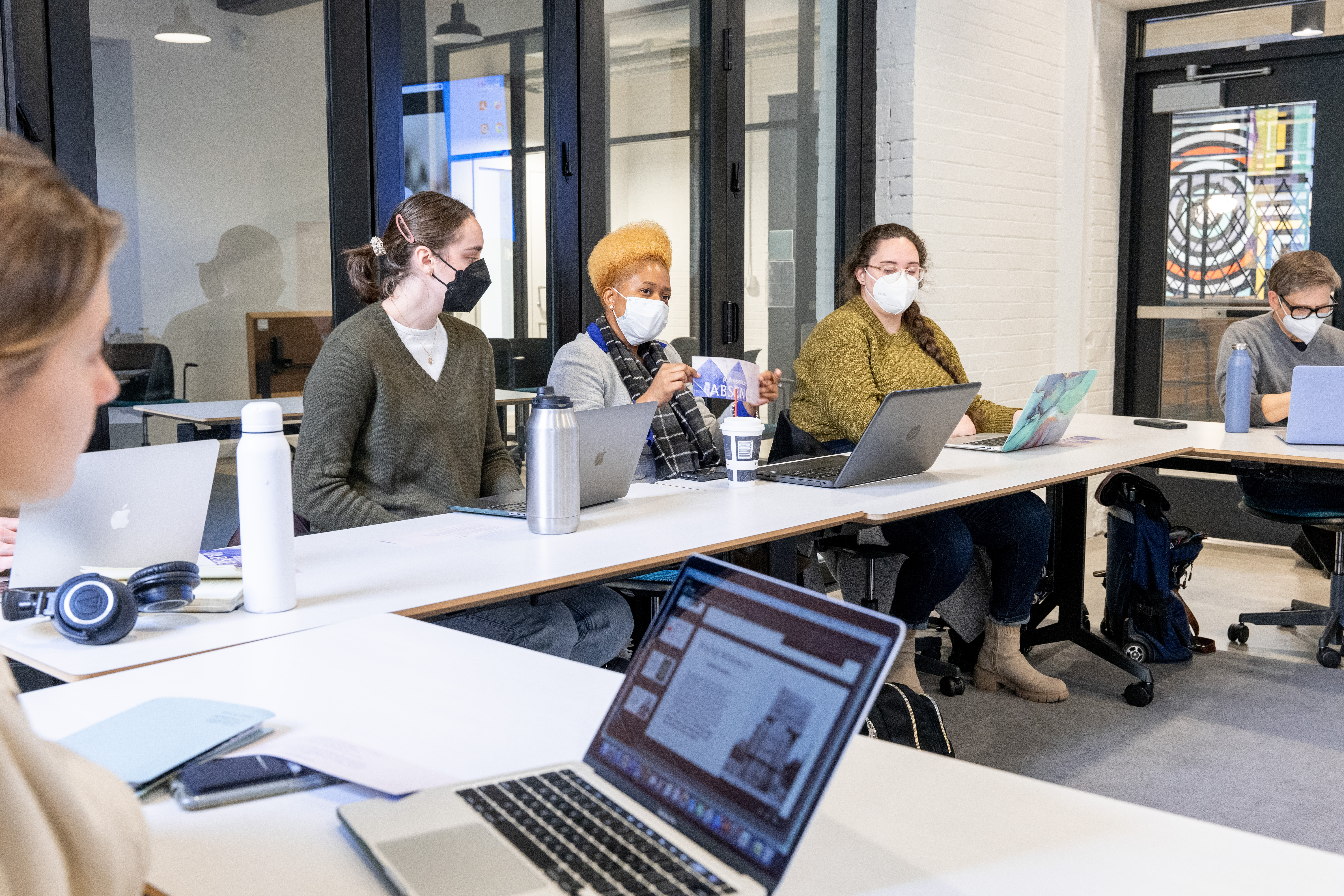 The StudioLab course is part of the Center for the Humanities’ Redefining Doctoral Education initiative, which helps equip doctoral students in the humanities with professional skills beyond teaching and research. Walke and Ward note that students have had to think both about the academic theory involved in studying trauma and memory and learn how to manage complex community-engagement projects. Even the course itself, held inside the newly renovated Lewis Collaborative building, embodies the spirit of community collaboration. Class sessions are held in a public space behind a coffee shop, and Walke and Ward invite members of the public to join discussions while they have a latte once the coffeeshop is open.