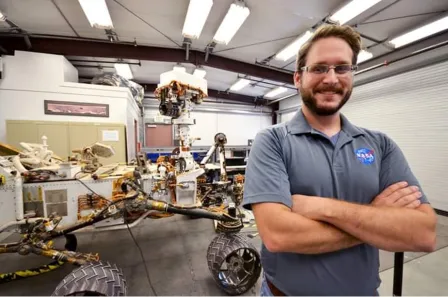 Michael Bouchard, PhD ‘19, is part of a global team that is preparing the greatest rock-hunting expedition in history. As a payload systems engineer at NASA’s Jet Propulsion Laboratory in Pasadena, California, he’s playing an important role in the Mars Sample Return campaign, an ambitious project that aims to deliver rocks from the surface of Mars — specifically within and around Jezero Crater — to labs on Earth.
