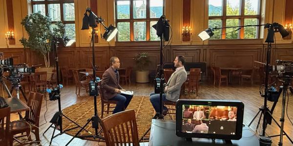 Header image: Burge speaking with CBS News on the Danforth Campus (Credit: Courtesy of Burge)