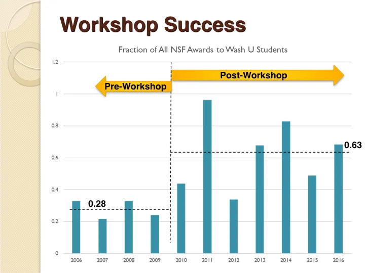 Since the workshop’s inception, WashU students have more than doubled the annual share of NSF fellowships they receive – a boon for both students and their advisors, since the awards provide funding for tuition and stipends during three years of a student’s graduate education.