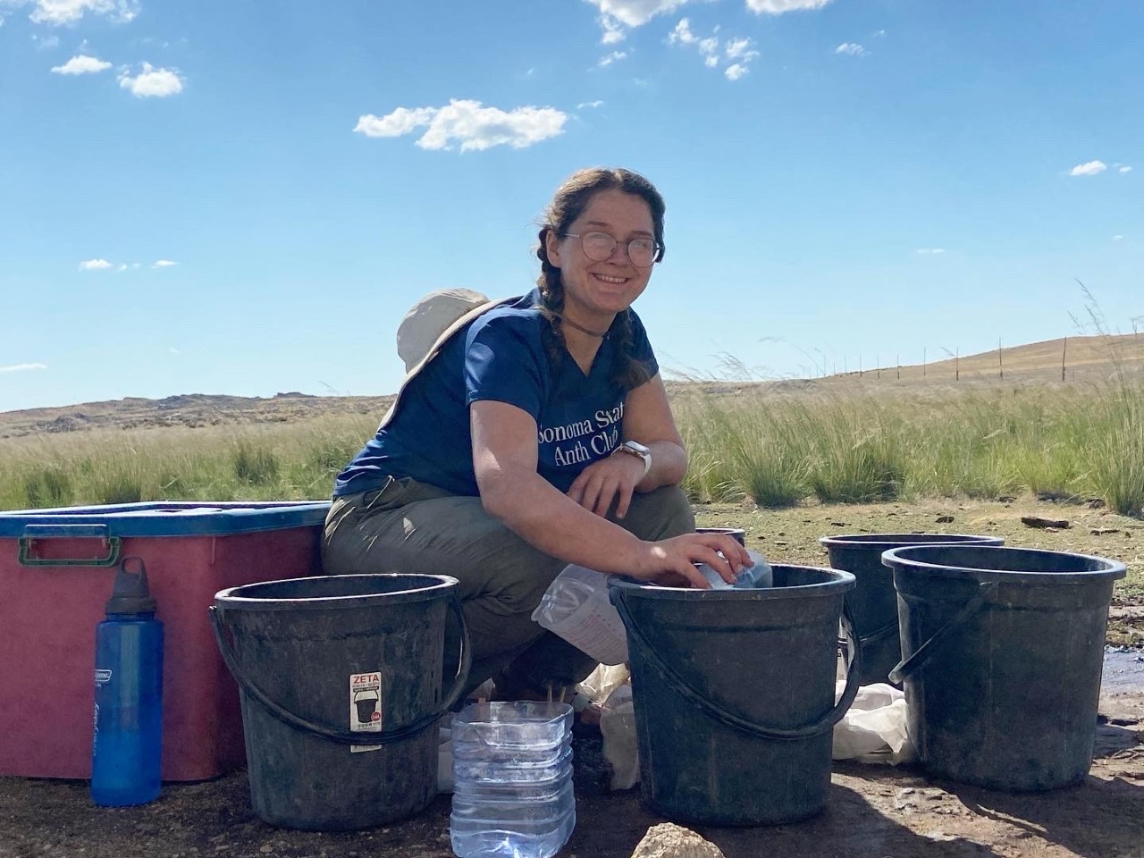 On the other side of the world, fellow doctoral candidate Melissa Ritchey is able to participate in excavation work for her dissertation, but she has transitioned to a more lab-based question to stay on track for graduating on time. Her research takes place in mountainous regions of Central Asia, where she uses excavated plant matter — both from digs she participates in and museum collections — to examine how labor choices affected Bronze-age agriculture in environments with short summers and long winters. She hopes her research will give insight into how people in the past were able to grow crops in extreme conditions and help people today know how to grow and plan agricultural food sources as the climate changes.