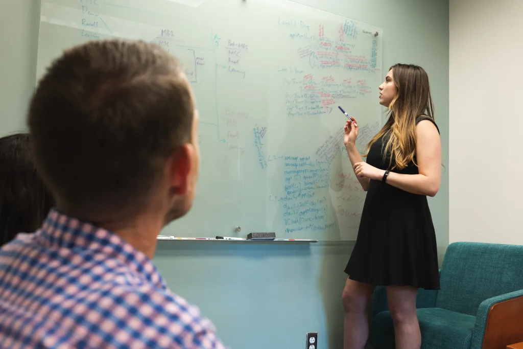 Graduate student Gabrielle Pfund outlines her strategy for a new research project.