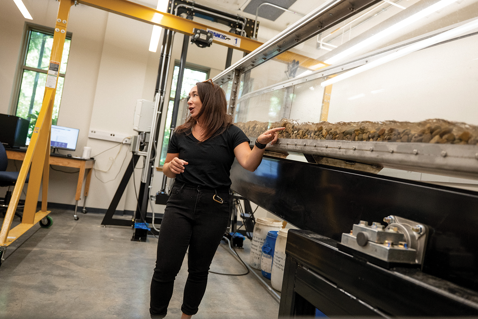 As a geomorphologist, Masteller is an expert on landscapes. Her research focuses on how landscapes form and change. She aims to better understand why Earth’s surface looks the way it does, how it might respond to future changes in weather and climate, and, critically, how landscape dynamics impact people living in those areas. In ongoing collaborative research funded by the National Science Foundation, Masteller combines experimental studies of river erosion in her lab with historical flood data and geospatial data from real river channels to quantify how sensitive rivers are to changes in climate.