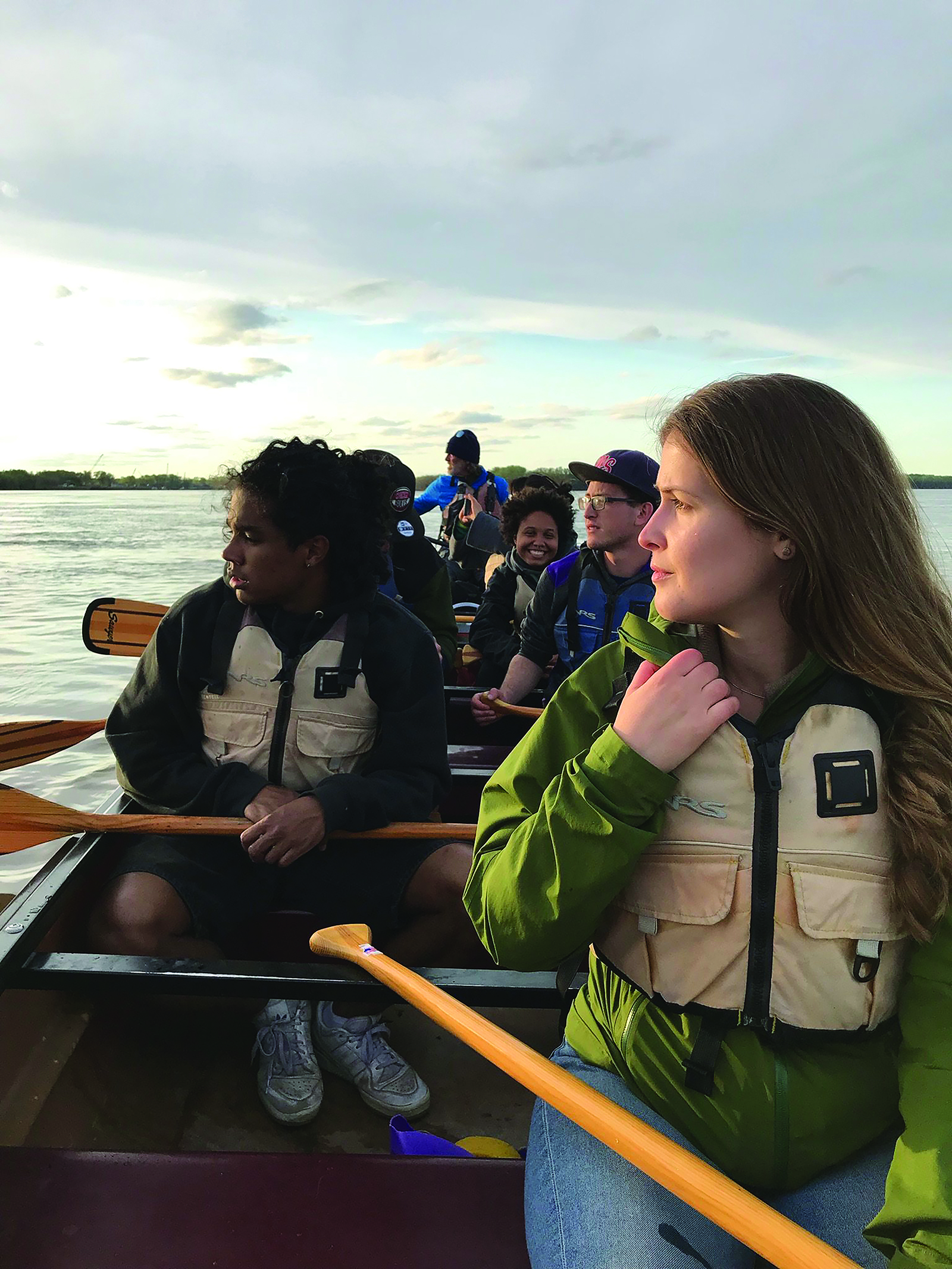 They knew they were getting close when they saw the bubbles. Shortly after came the smell. As six students, led by Robin McDowell, assistant professor of African and African-American studies, raised and dipped wooden paddles into the Mississippi River, they slowly approached the Mary Meachum Freedom Crossing. The students had read about Mary Meachum’s attempt in 1855, beginning at this location, to ferry nine enslaved people across the Mississippi to freedom in Illinois. But seeing the site in person — totally inaccessible except from the river and marked by industrial waste pouring into the water — raised some perplexing questions.