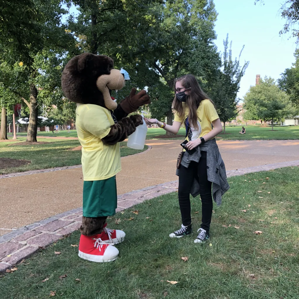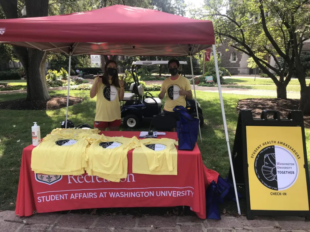You can spot them in their yellow shirts — which were designed by WashU student Helen Xiu, inspired by Stan Braude, professor of the practice of biology, and produced by an A&S alumna-led company. Chelsea Petersen, assistant athletic director for external relations, has been training SHAs to make sure they are all aware of recommended policies and procedures.