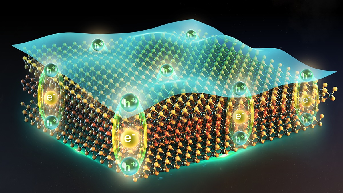Excitons are formed when a negatively charged electron from one lattice pairs with a positively charged electron “hole” — a vacancy left by an absent electron — from the other lattice. The electron-hole pair is held together by Coulomb attraction, creating a neutral quasiparticle. While excitons themselves do not conduct electricity, they can transport energy through the material and strongly influence its optical and electronic properties. The excitons trapped in supermoiré lattices would experience strong interactions with each other, leading to emergent quantum phenomena.