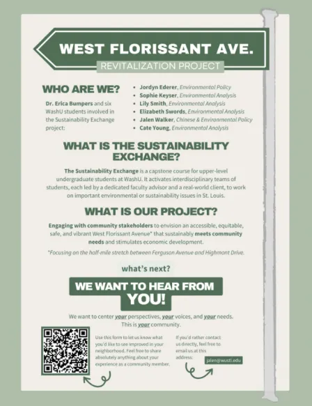 The iterative nature of “Sustainability Exchange” ensures that projects continue beyond any single semester. My team was the first to take on West Florissant Avenue, and our work will now serve as the foundation for future students to build on.