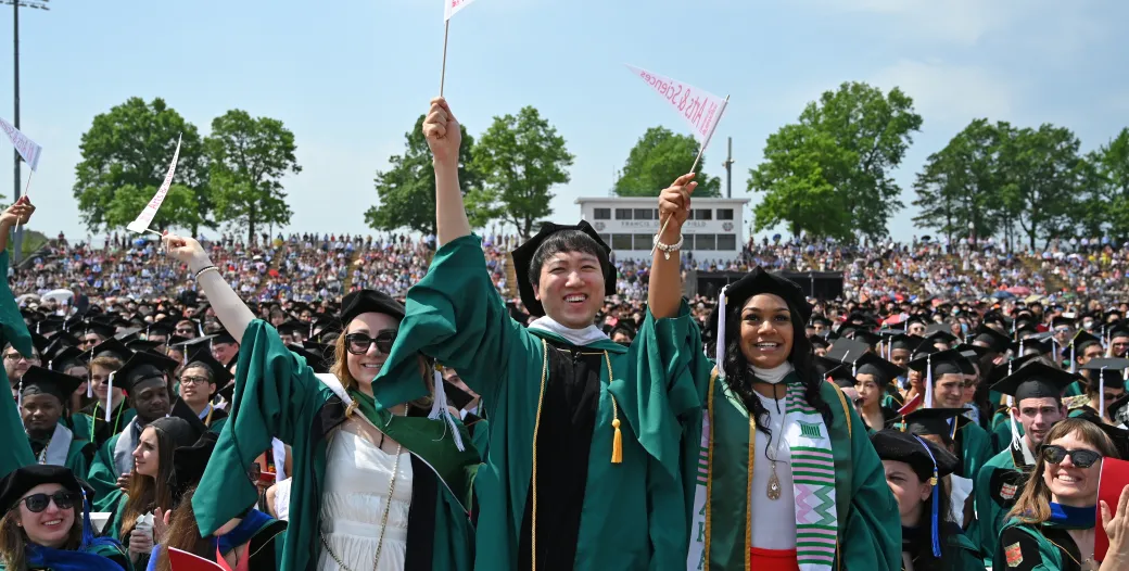 The university-wide Commencement Ceremony will take place on Monday, May 12, 2024, at 9:00 a.m. on Francis Olympic Field. Additional climate-controlled and accessible viewing locations will also be available.