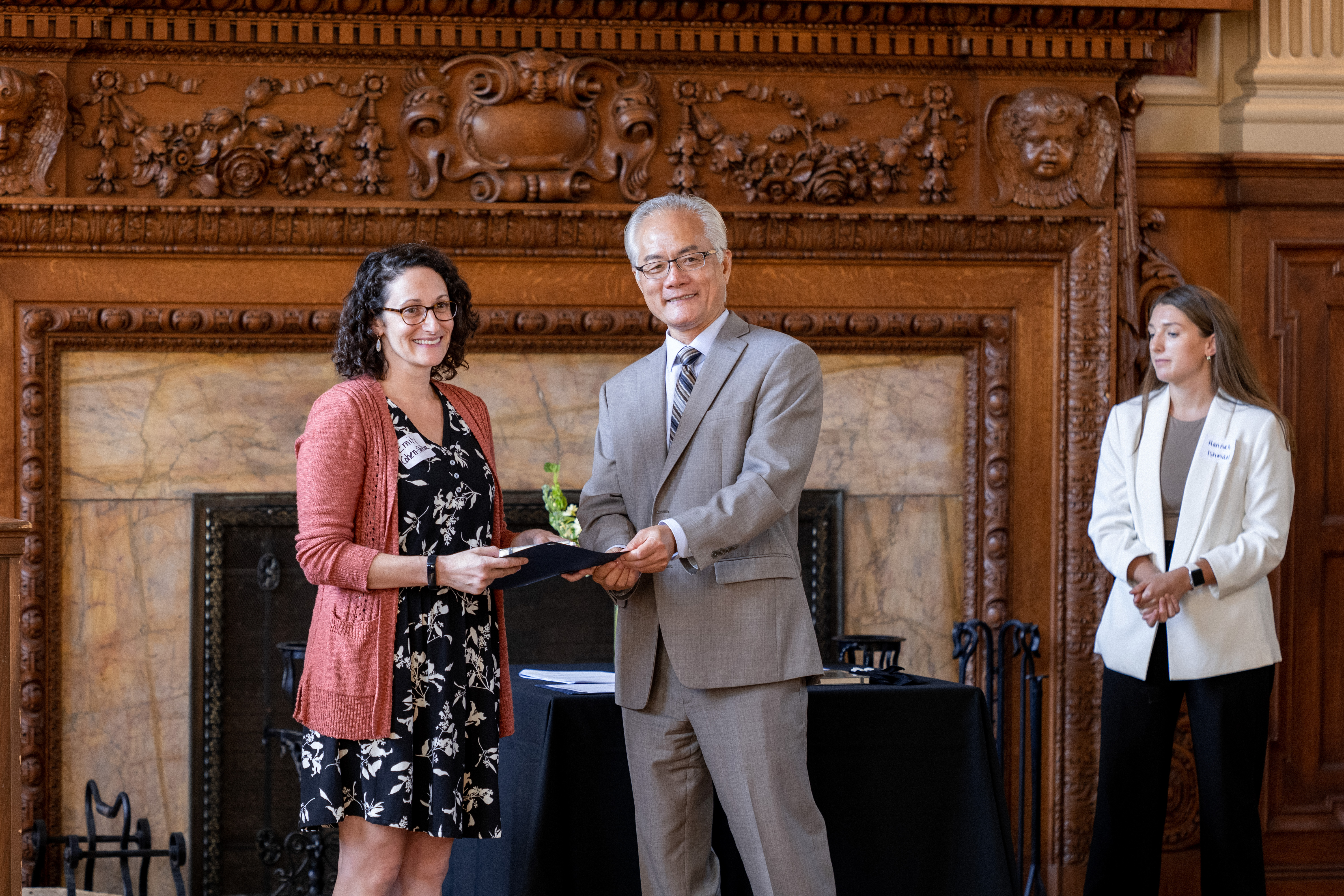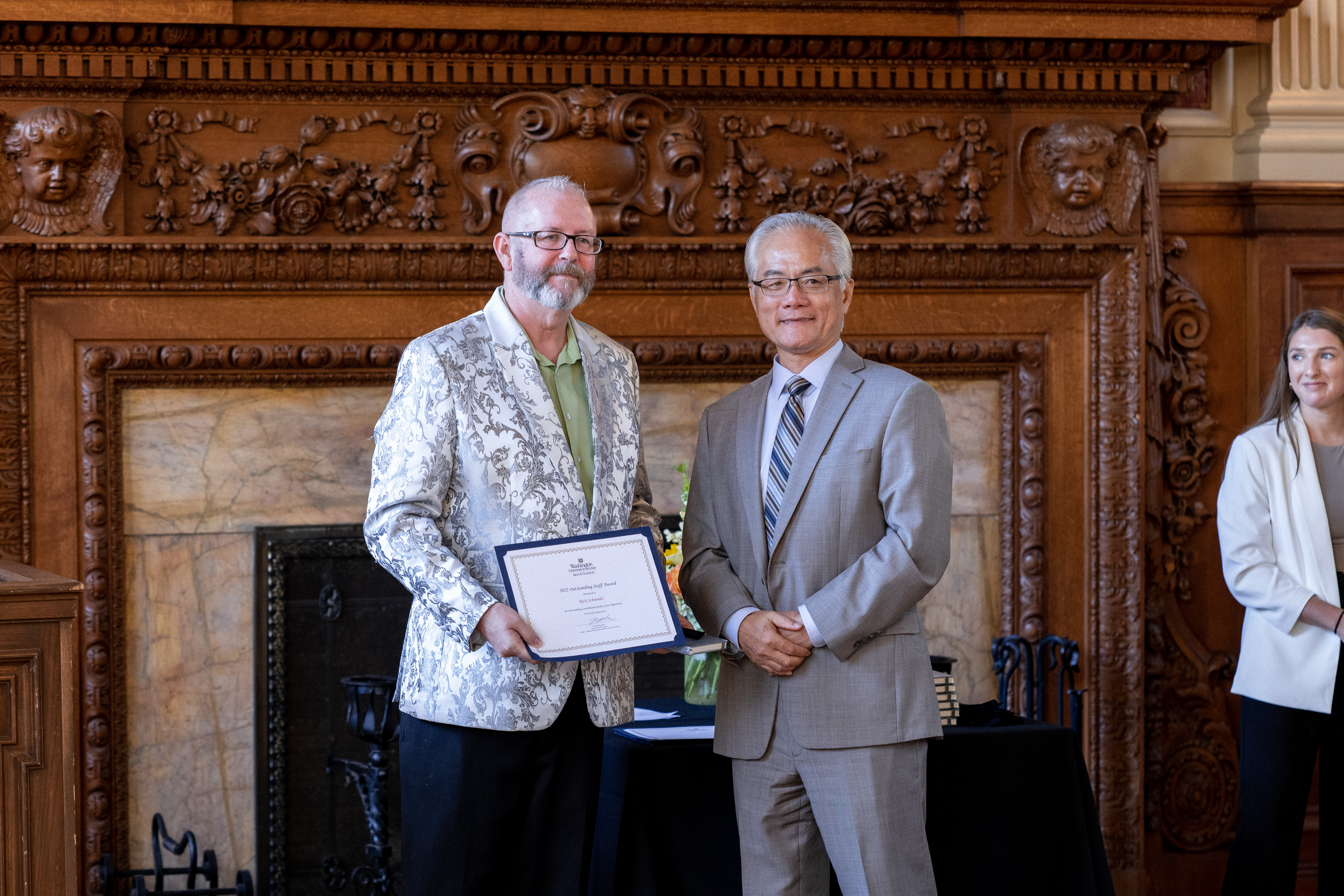 This award will be given annually and recognizes contributions from Arts & Sciences faculty who advance diversity in research, teaching, or service. This award highlights transformative research, teaching, or creative practice that significantly advances and promotes diversity on the basis of race, ethnicity, gender, neurological ability, socioeconomic status, age, nationality, or sexual identity. Contributions might include research that has driven a change in the nominee’s field of study, teaching or mentoring that significantly benefits underrepresented groups, or service that improves campus culture in ways that advance diversity and inclusion. (Geoff Ward was unable to attend the ceremony and reception.)