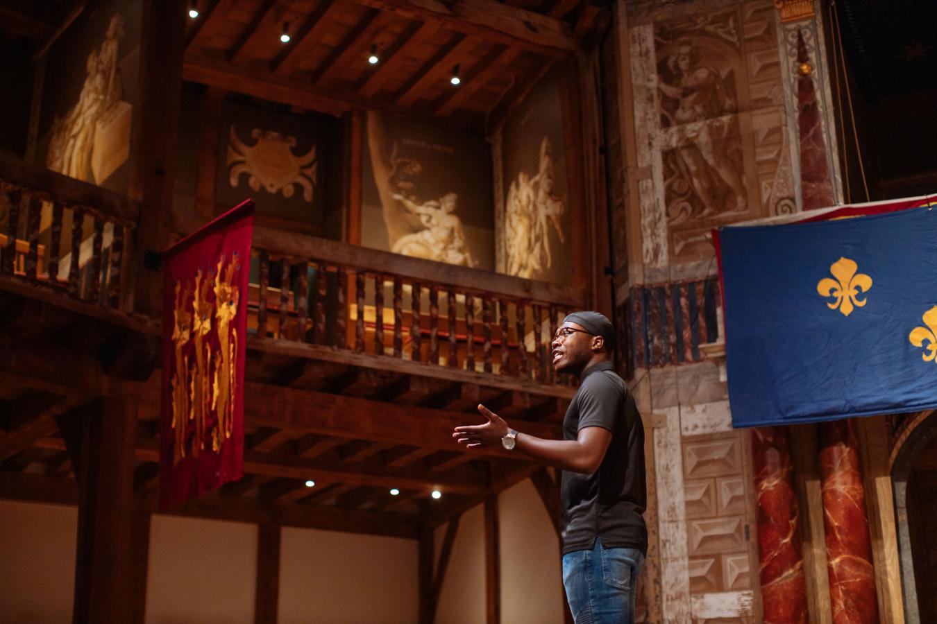 In this two-semester course, we will read and study Shakespeare’s plays in their historical context, learning about the original practices used in performance at both the Elizabethan and Jacobean court theatres as well as the public theatres on the South Bank of the Thames. We will also consider them as adaptable playscripts that have been rewritten over the past 400 years, reinterpreted at different times by different actors in different cultures the world over. Students will contribute to this performance repertoire with their own 21st-century interpretations, striding the stage of the reconstructed Globe Theatre in a capstone experience that concludes the course with a summer trip to London. If all the world’s a stage, come be a player in it!
